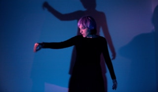 Je me suis inspirée ici du mythe moderne de la Gorgone, qui, comme les sirènes de l’Odyssée, vit dans la mer, hante les marins et décide de leur destin. J’ai cherché à développer un timbre de voix plus grave et plus profond. Enceinte de mon premier enfant, je me sentais habitée d’une animalité sauvage. Un éclairage violacé crée une atmosphère étrange et marine. Des voix comme des appels bestiaux ondulent au loin, s’ajoutent et se superposent les unes aux autres. Les ombres de la créature se démultiplient alors qu’elle entre dans la lumière. La gorgone gémit, grogne ; elle fusille ses spectateurs du regard. Elle se fâche contre les dieux, puis s’adoucit le temps d’une berceuse. Avec ses gestes, elle déclenche des sons, apportent des modifications au décor lumineux. Après une quinzaine de minutes, elle s’en va, emportant avec elle une part de son mystère, un cri strident sera comme dernier mot.