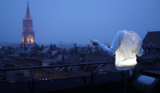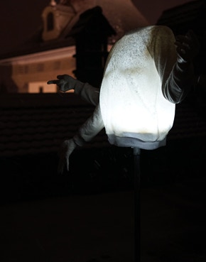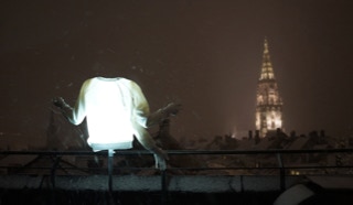 A three-armed bust, dressed in a snow-white sweater is exposed on a terrace. It overlooks the old town of Bern and faces the snowy Alps. In front of this majestic panorama, the headless sculpture lights up from the inside and slowly pulses with a soft moonlight. This work expresses the passing of time, which sometimes presses. Do we know how to stop for a moment to meditate, to pause and make the right choices? What turn to take? For me? And for the climate? This way? This way? What does my compass tell me? Here, it is the belly, the second brain that breathes, then guides.
